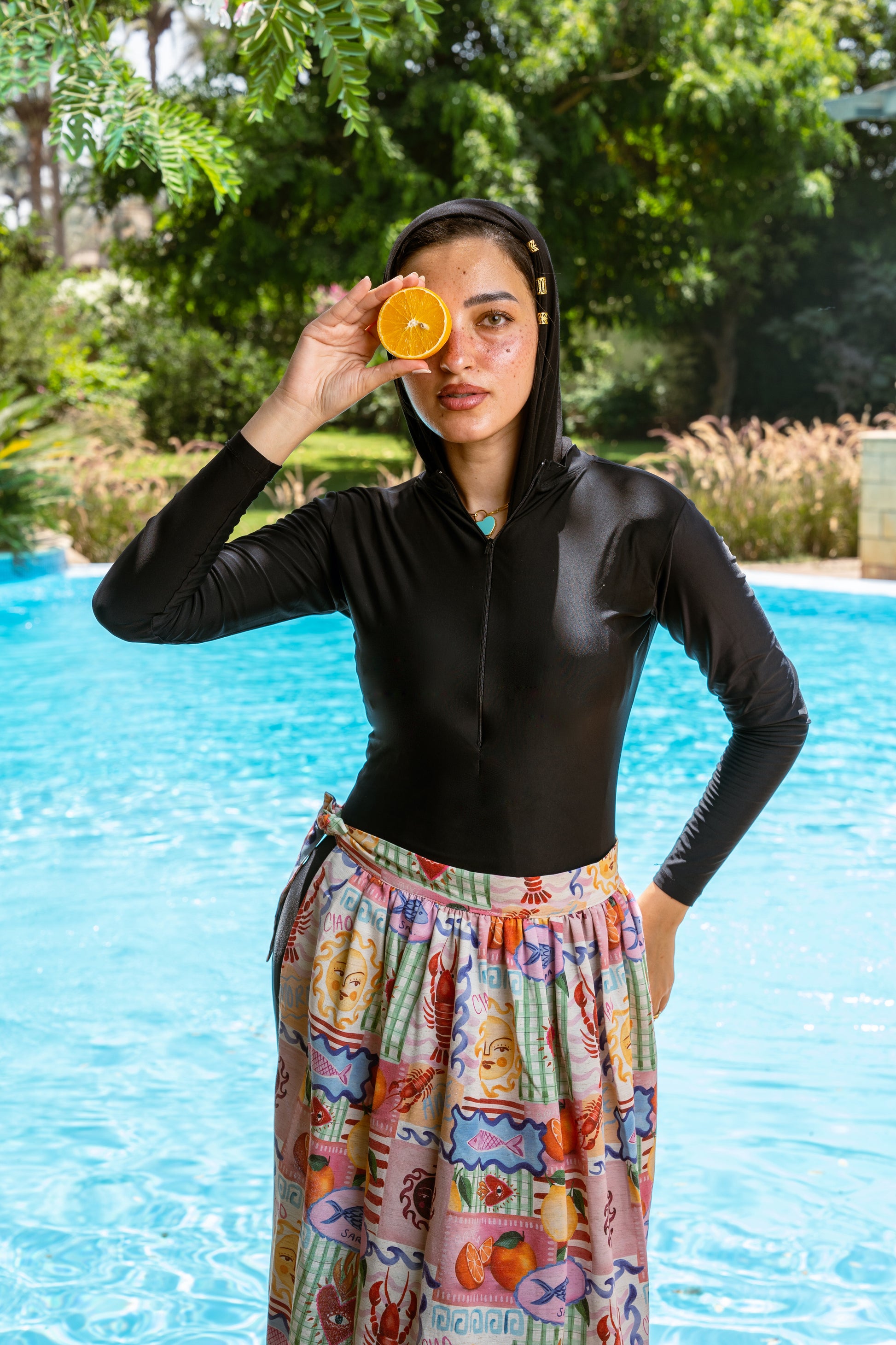 Introducing our Sardina cover-up a vibrant mosaic of summer hues, blending aquamarine blues, coral pinks, and sunlit yellows. It's like wearing a canvas painted by the season itself.