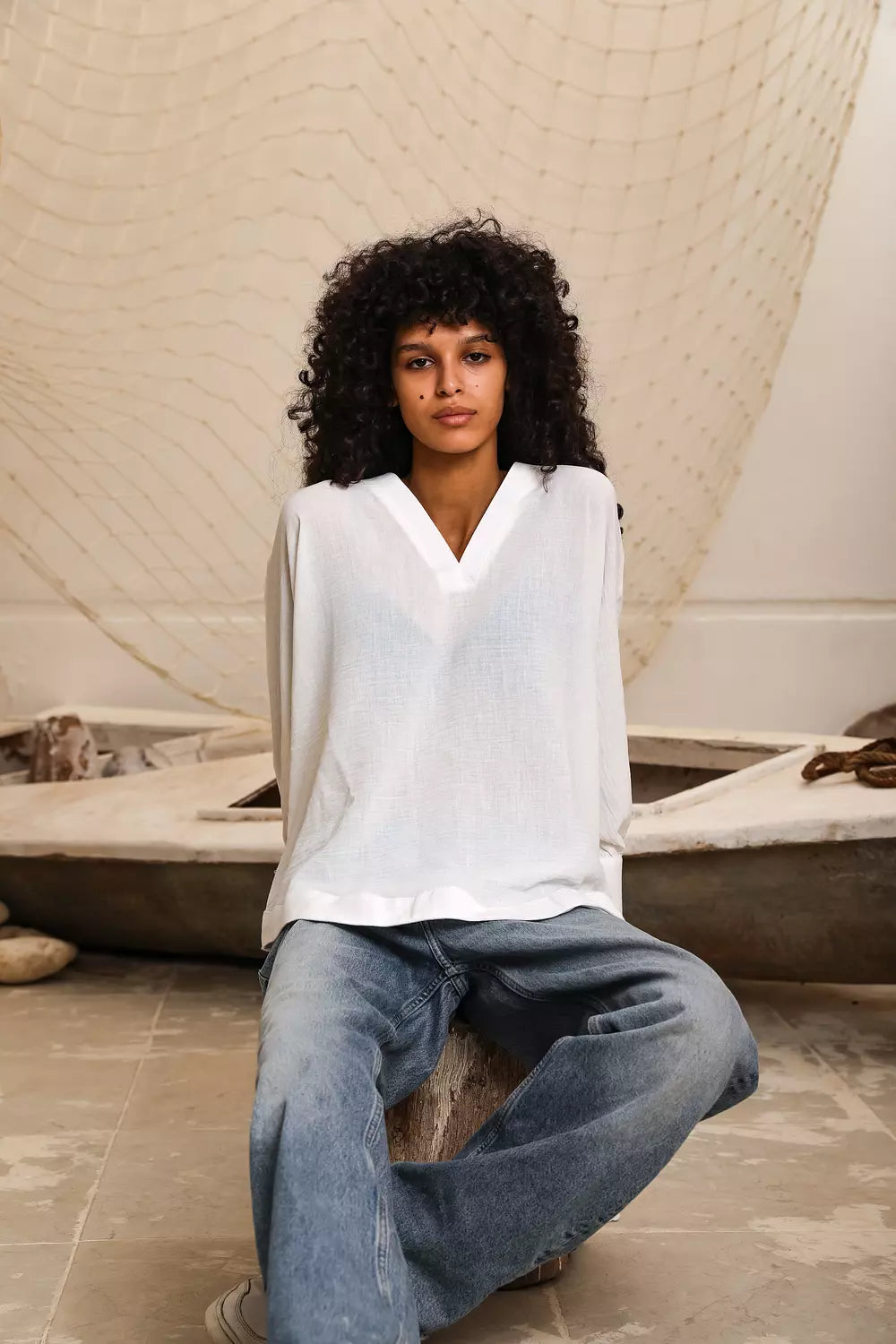 Crafted from premium Italian linen for unrivaled comfort and style. The oversized silhouette exudes effortless chic, providing a relaxed yet sophisticated look. Whether paired with denim for a laid-back weekend vibe or dressed up with